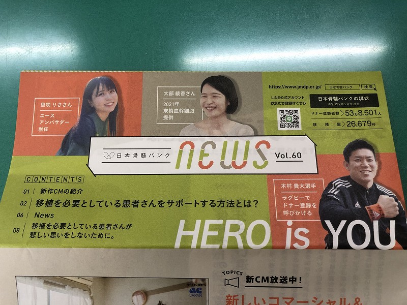 ところが、残念なことに年齢を重ねるに連れて血液中の数値が下がり、貧血気味になってしまい、ここのところ献血受付に行っても取ってもらえない、ということが続いています。骨髄バンク登録もしているので、これではドナーの手紙が来ても協力が難しいかなぁと思っています。(一生のうちに適合があれば一度は提供してみたかったなぁと)